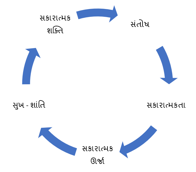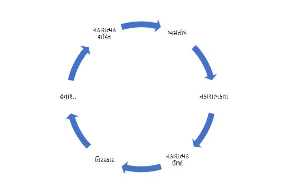 આ રીતે, આપણા અંતરમાં પહેલેથી જ ઊર્જા શક્તિ છે. તમારે નક્કી કરવાનું છે કે તમારે કેવી ઊર્જા જોઈએ છે સકારાત્મક ઊર્જા કે નકારાત્મક ઊર્જા. બધાને સકારાત્મક ઊર્જા જોઇએ છે જે સંતોષ વર્તુળમાં બતાવી છે. પરંતુ મોટાભાગે આપણે તેને મેળવવાનો પ્રયાસ કરી રહ્યા નથી તેથી આપણે અસંતોષ વર્તુળનો ભોગ બનીએ છીએ.
