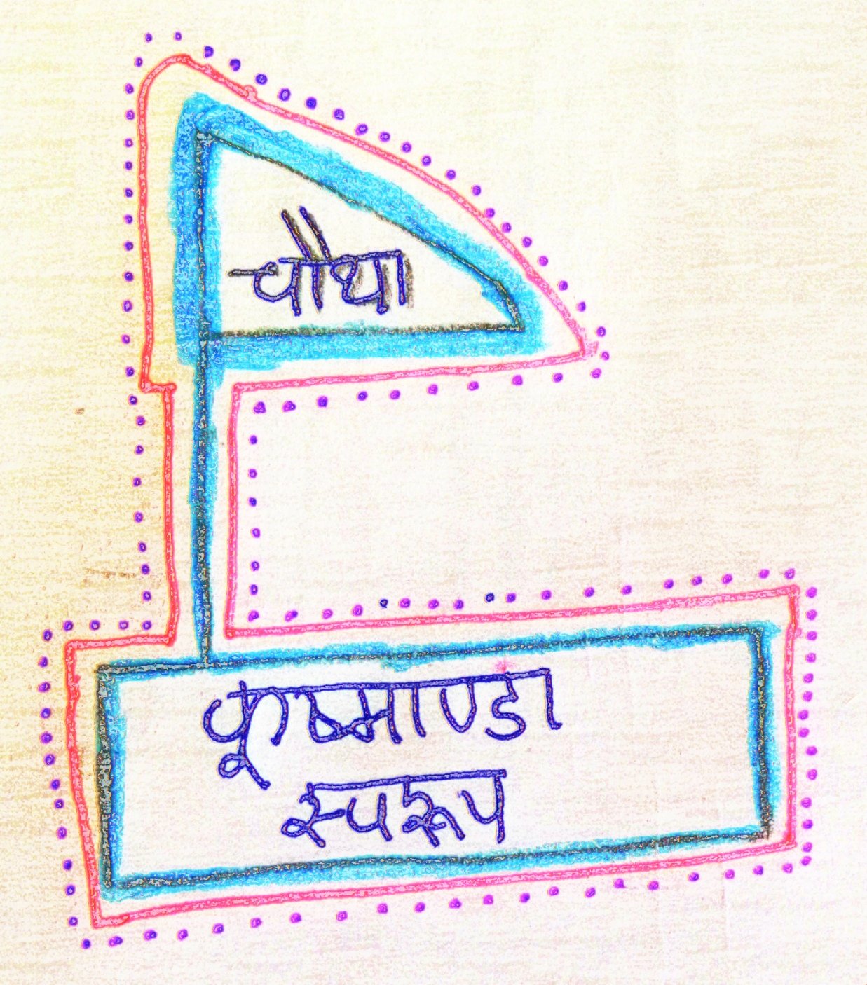 “कू” का अर्थ है “कुछ”, “उष्मा” का अर्थ है “ताप” और “अंडा” का अर्थ है “ब्रह्मांड” मतलब थोड़ी ही उष्मा से पूरे ब्रह्मांड को उत्पन्न किया, इसलिए यह स्वरूप कूष्माण्डा के नाम से जाना जाता है।