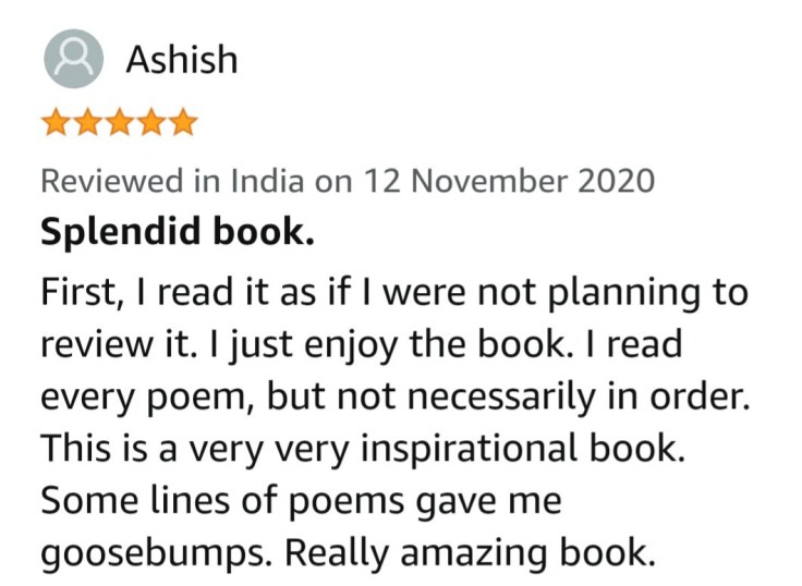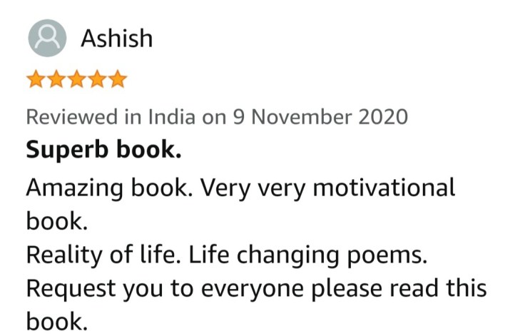 मेरी पहली किताब “जीवन के शब्द” को बहुत ही अच्छा प्रतिसाद मिल रहा है, यह बात आप सभी से साझां करके बहुत ही खुशी महसूस हो रही है।